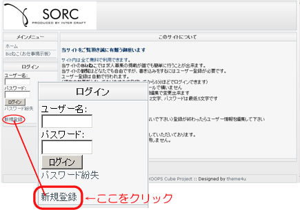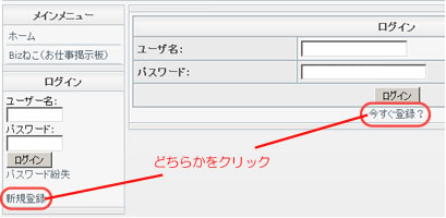 画面向かって左側の「ログイン」というメニューの中の「新規登録」という文字をクリックします。
