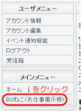 1.ログイン後、メインメニューの「Bizねこ」をクリック します。